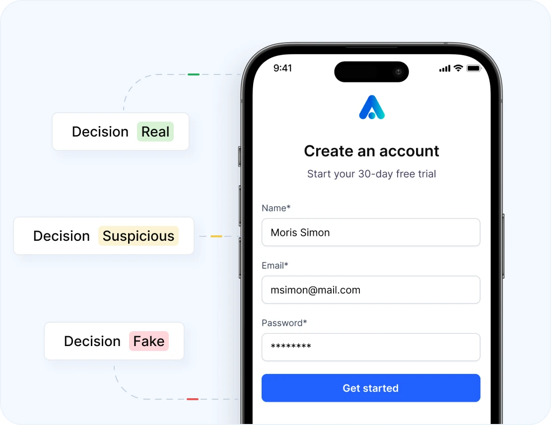 Invisibly catch duplicates, AI bots, and fraud. Customize decisions without engineering resources. And verify user identity with AI agents. All in one platform.