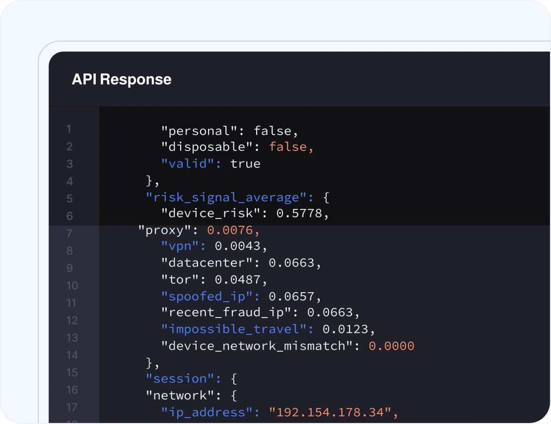 Detect anonymized connections without traditional IP blocklists - which are outdated and lead to false positives. Verisoul detects residential, mobile, and even never-before-seen proxies with active network testing.